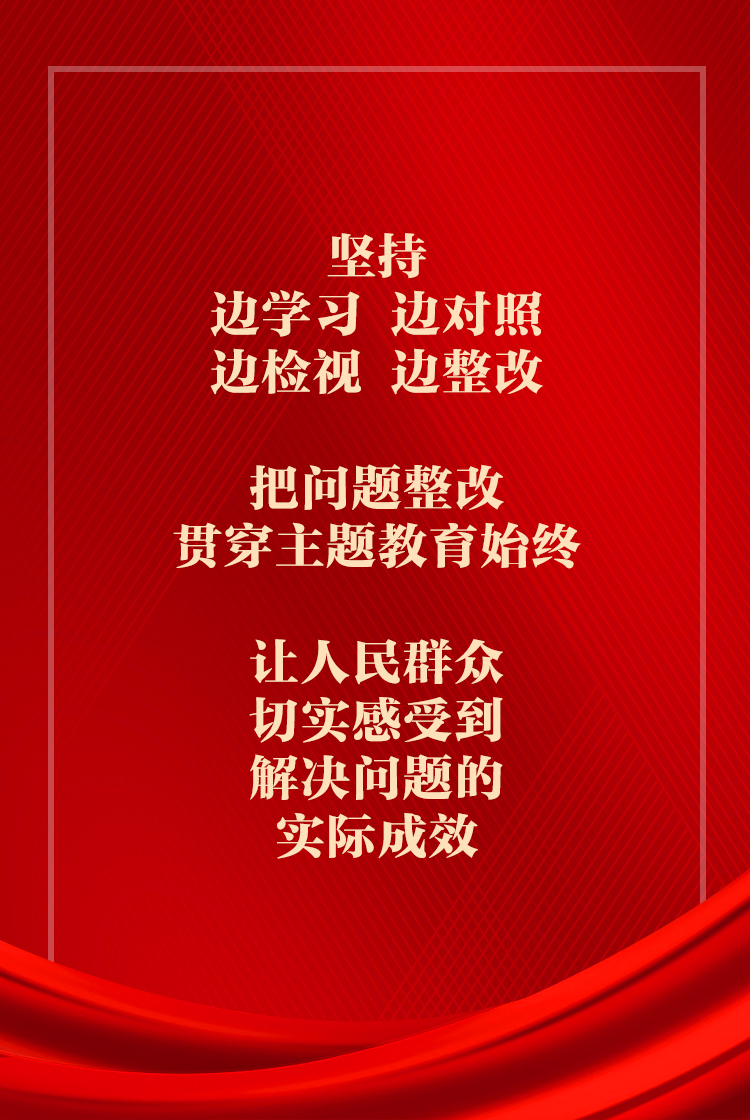 会议要求,要坚持领导带头。会党组要切实担负起把方向、管大局的政治责任,党组书记要精心谋划、靠前指挥,带头学、带头讲、带头干,其他领导干部要先学一步、学深一层,紧紧锚定目标任务,自觉把主题教育抓在手中,主动将各项任务落到实处,高标准高质量推动主题教育扎实有序开展。要大兴学习之风,坚持学思用贯通、知信行统一,要带着信仰学、带着责任学、带着感情学、带着使命学,真学真信、真懂真用,努力在以学铸魂、以学增智、以学正风、以学促干方面取得实实在在的成效。要突出目标导向和问题导向,全面对照检视找准问题、找出差距及努力方向,切实把存在的问题溯源挖根、彻底整改。