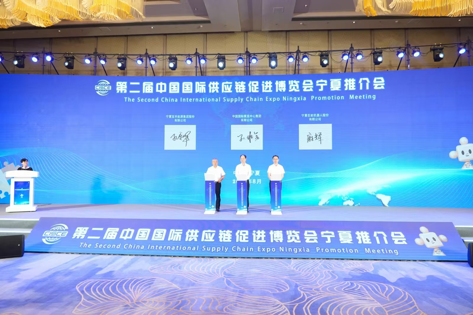 8月28日下午,第二届中国国际供应链促进博览会(以下简称“链博会”)宁夏推介活动在银川成功举办。来自宁夏的清洁能源、先进制造、绿色农业、健康生活等领域22家重点企业与中国国际展览中心集团签署参展协议,各有关单位、企业150余人参加推介会。