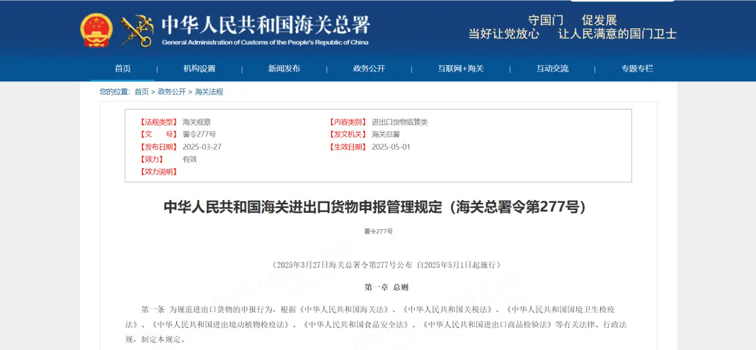 依据:《中华人民共和国海关进出口货物申报管理规定》(海关总署令第277号)。