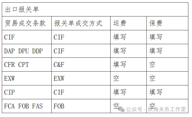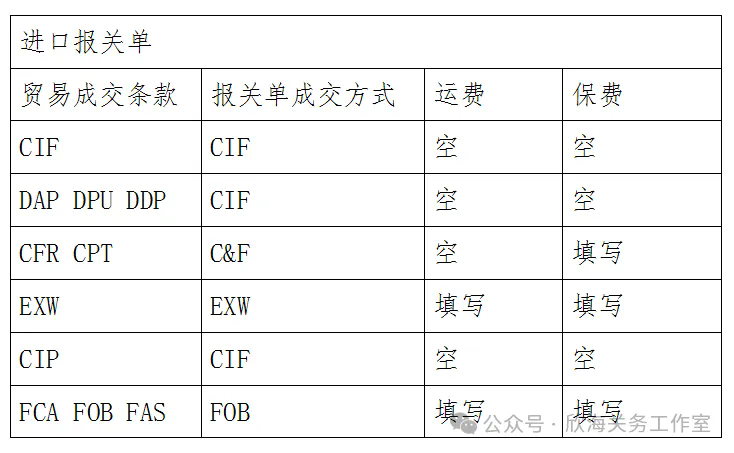 二、国际贸易术语与报关单“成交方式”的对应关系