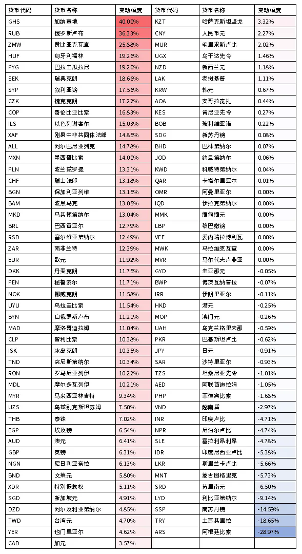图1 2025年美元指数货币对美元变动情况