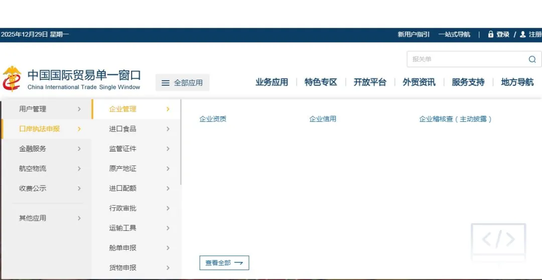 企业通过“中国国际贸易单一窗口”,选择“业务应用”项下“企业资质”进入境外注册管理”,选择“境外注册申请”,按要求填写相关信息、上传有关资料。