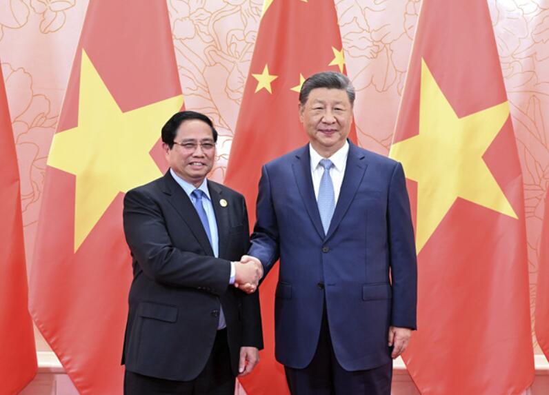 8月31日下午,国家主席习近平在天津迎宾馆会见来华出席2025年上海合作组织峰会的越南总理范明政。