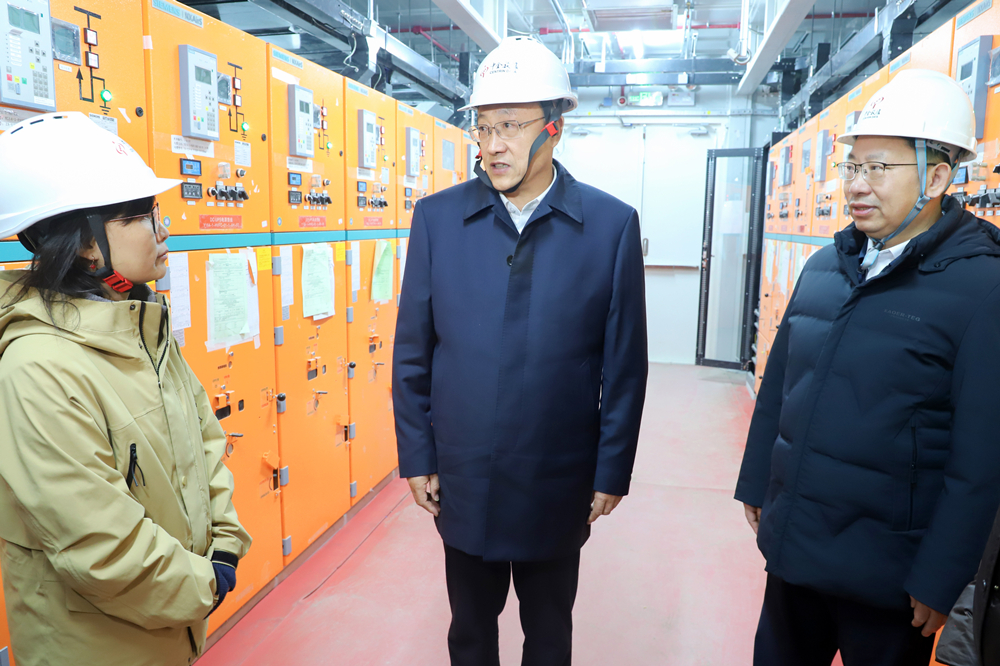 李邑飞在中金数据中卫零碳算力基地,调研绿色智算产业项目建设情况。中卫市新闻传媒中心记者 杨雪/图