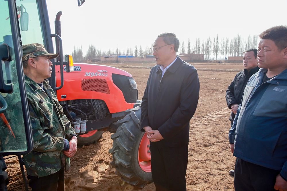 李邑飞在吴忠市利通区扁担沟镇渠口村,调研春耕备耕工作。吴忠市新闻传媒中心记者 谷刚/图